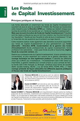 Les Fonds de Capital d'investissement, 3ème Ed Daniel Schmidt texte complet - Les Fonds de Capital d'investissement, 3ème Ed a été écrit par Daniel Schmidt qui connu comme un auteur et ont écrit beaucoup de livres intéressants avec une grande narration. Les Fonds de Capital d'investissement, 3ème Ed a été l'un des livres de populer sur 2016. Il contient 800 pages et disponible sur format . Ce livre a été très surpris en raison de sa note rating et a obtenu environ avis des utilisateurs. Donc, après avoir terminé la lecture de ce livre, je recommande aux lecteurs de ne pas sous-estimer ce grand livre. Vous devez prendre Les Fonds de Capital d'investissement, 3ème Ed que votre liste de lecture ou vous serez regretter parce que vous ne l'avez pas lu encore dans votre vie.Rang parmi les ventes Amazon: #292891 dans LivresPublié le: 2014-12-16Sorti le: 2014-12-16Langue d'origine: FrançaisDimensions: 8.66" h x 1.46" l x 5.71" L, Reliure: Broché800 pagesPrésentation de l'éditeurLes fonds alternatifs et notamment les fonds de Capital Investissement suscitent de plus en plus la curiosité et l intérêt. De l Europe qui bouleverse cette industrie avec la Directive AIFM aux médias qui relatent chaque jour la prise de contrôle d une société par un « fonds de Capital Investissement ». Mais que recouvre la notion de fonds de Capital Investissement ? Quelles sont les règles juridiques qui gouvernent leur création, leur fonctionnement et leur liquidation ? Quelle est leur fiscalité et celle de leurs investisseurs ? C est à l ensemble de ces questions que le présent ouvrage répond. Cette troisième édition traite également des dernières évolutions apportées aux fonds de Capital Investissement et plus généralement aux fonds alternatifs : Directive AIFM, modernisation de la gamme des fonds d investissement (fonds professionnels de capital investissement, fonds professionnels spécialisés... mais aussi fonds de prêt à l économie), régime fiscal du corporate venture, etc. Destiné aux professionnels du Capital Investissement, à leurs conseils et aux universitaires, et plus largement aux acteurs de la gestion alternative, cet ouvrage technique se veut également pratique. Il identifie les différents choix qui s offrent aux investisseurs : l investissement doit-il être direct ou intermédié, la gestion réalisée pour compte propre ou pour compte de tiers, le Fonds doit-il être français ou étranger, constitué sous forme de société (SCR, société holding, SICAV...) ou de fonds (FPCI, FCPR, FPS...) ? Cet ouvrage présente de façon exhaustive les différents aspects juridiques et fiscaux des fonds de Capital Investissement.Biographie de l'auteurFlorence Moulin est avocat au sein du cabinet Jones Day. Elle est membre du Comité juridique de l Association Française des Investisseurs pour la Croissance (AFIC). Daniel Schmidt est avocat au sein du cabinet Jones Day. Il a été pendant près de 15 ans le conseil de l Association Française des Investisseurs pour la Croissance (AFIC). Daniel Schmidt et Florence Moulin sont régulièrement classés parmi les meilleurs praticiens de leur domaine, notamment par Chambers Europe (2014) et The Legal 500 EMEA. Ils ont participé à l élaboration des textes juridiques et fiscaux relatifs aux fonds de Capital Investissement, en relation avec les pouvoirs publics (Ministère de l Economie et des Finances, Parlement) et les autorités administratives (AMF).